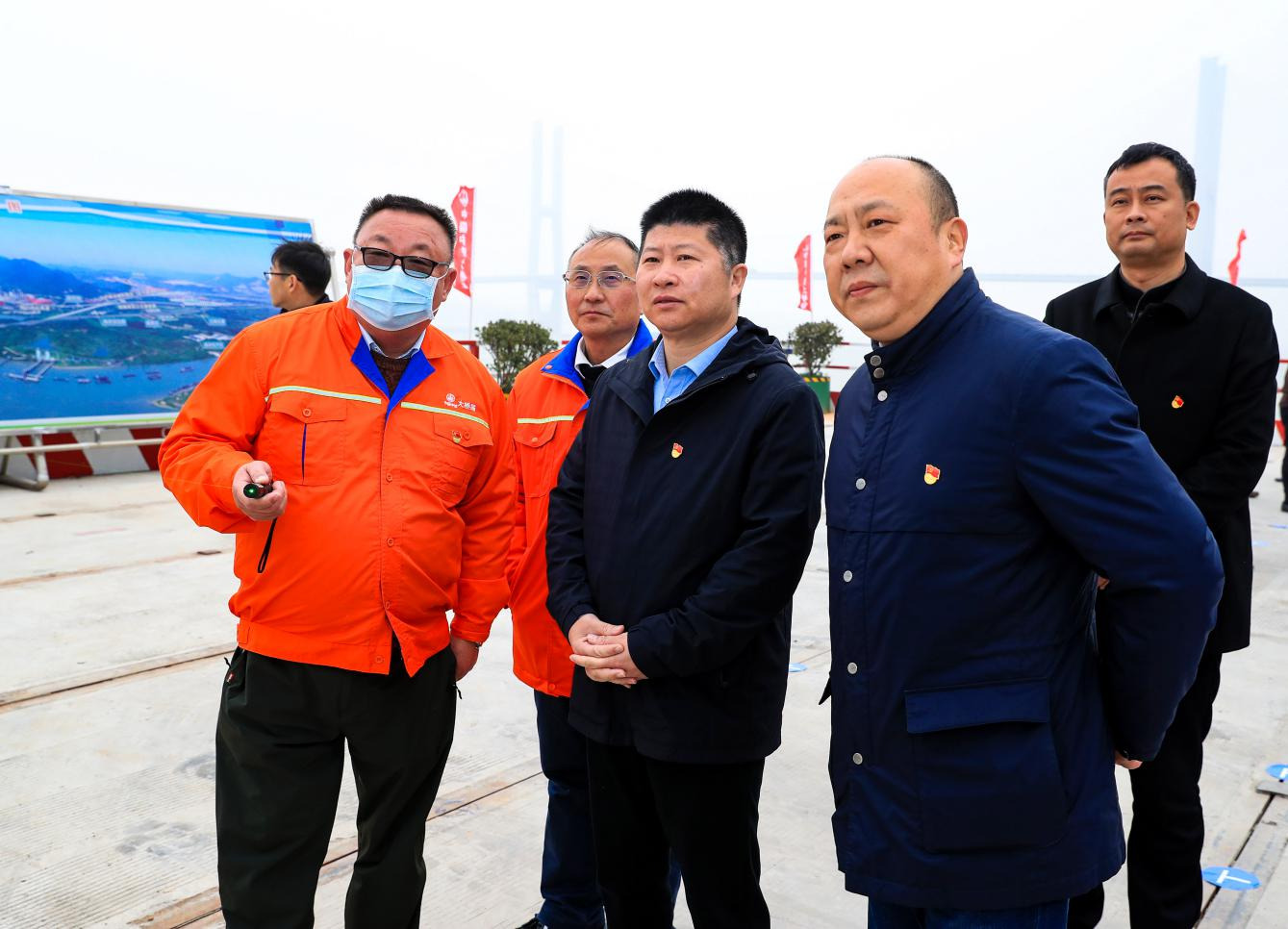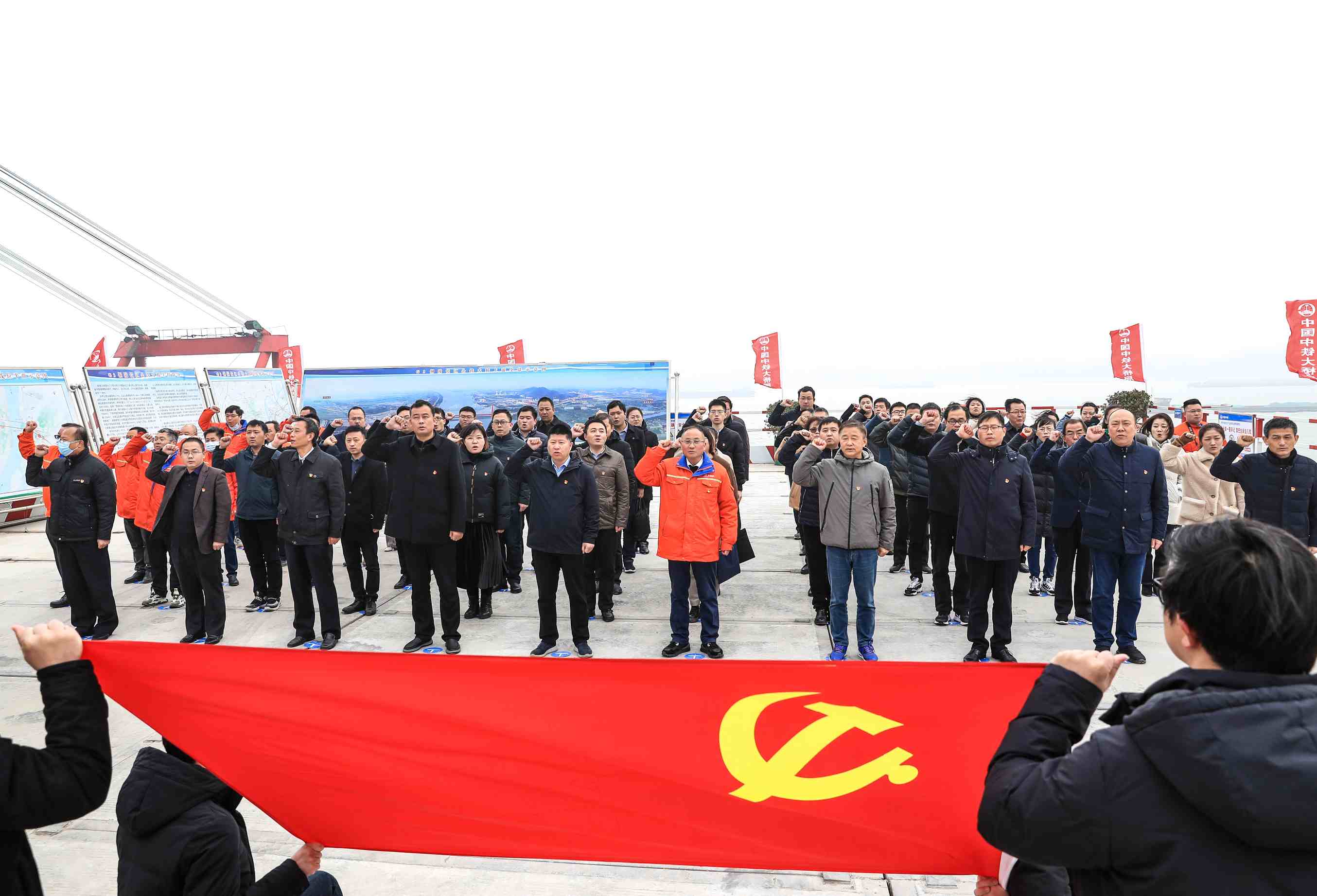 G3銅陵長(zhǎng)江公鐵大橋是我市貫徹落實(shí)習(xí)近平總書記考察安徽重要講話精神、著力推動(dòng)長(zhǎng)江經(jīng)濟(jì)帶發(fā)展戰(zhàn)略的重要舉措。胡啟書一行深入施工現(xiàn)場(chǎng),實(shí)地查看施工進(jìn)度,并聽取項(xiàng)目總體情況介紹。在G3銅陵長(zhǎng)江公鐵大橋南岸棧橋碼頭,全體黨員在領(lǐng)誓人的帶領(lǐng)下,面對(duì)鮮紅的黨旗,重溫入黨誓詞。隨后,胡啟書、季躍華共同為部分黨員代表送上了“政治生日”禮物。