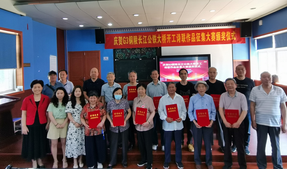 6月10日上午,慶祝G3銅陵長江大橋開工詩聯(lián)作品征集大賽頒獎儀式在市建安小學(xué)會議室舉辦,評委會在全市詩聯(lián)愛好者投稿近百件作品中優(yōu)中選優(yōu),最終評選出一、二、三等獎和優(yōu)秀獎。