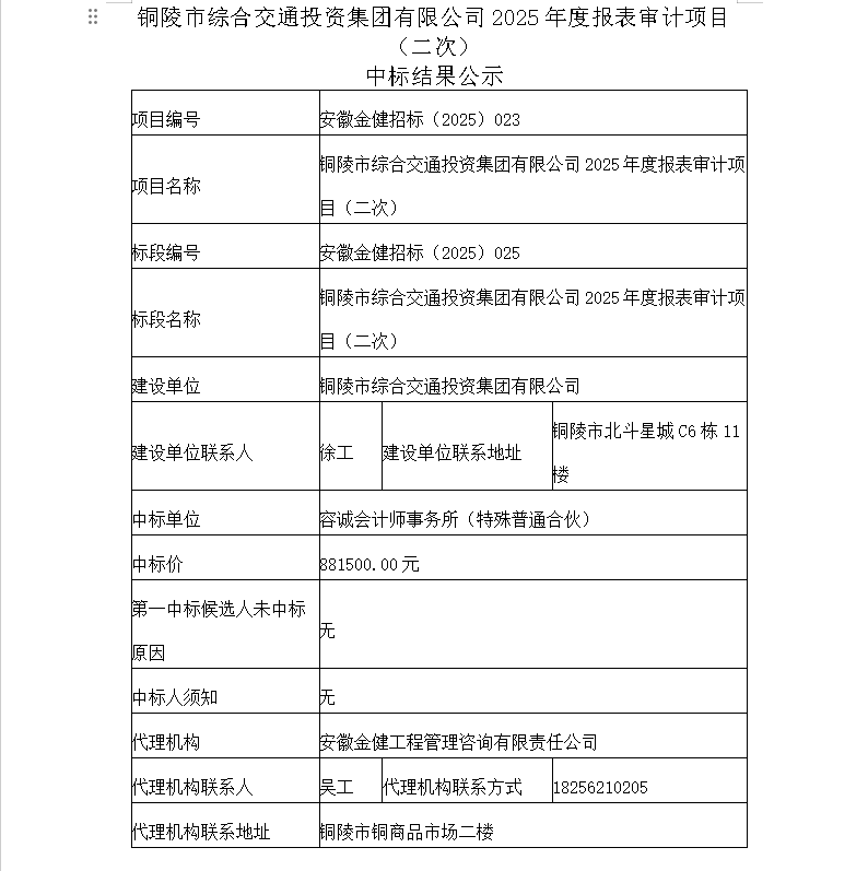 銅陵綜合交通投資集團(tuán)有限公司
