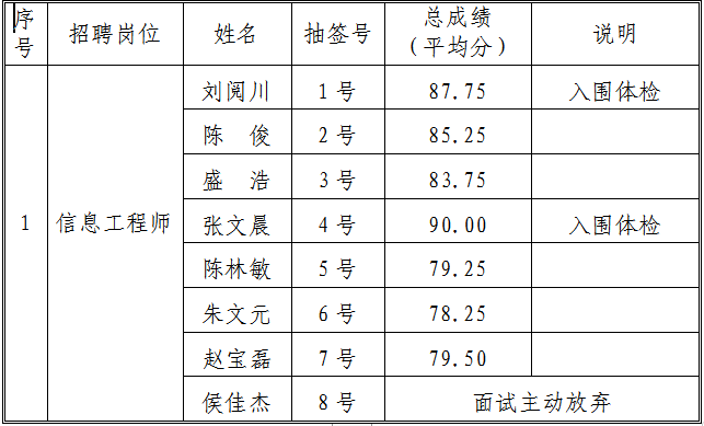 1.信息工程師崗位體檢入圍人員名單