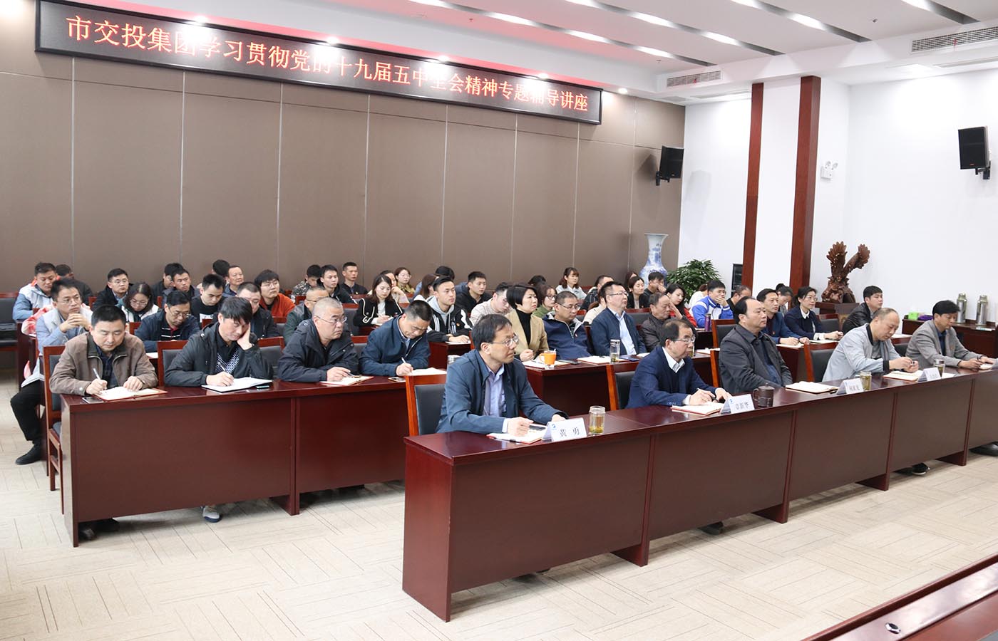 為深入學(xué)習(xí)貫徹黨的十九屆五中全會精神,11月19日下午,集團公司邀請市委黨校楊陟教授作專題輔導(dǎo)講座。公司黨工委班子、中層以上管理人員、黨員以及入黨積極分子參加學(xué)習(xí)活動。